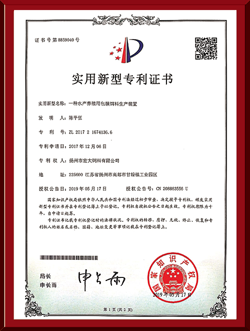 本公司技術(shù)力量雄厚,依托中國水產(chǎn)科學(xué)院無錫淡水研究中心、上海水產(chǎn)大學(xué)和揚(yáng)州大學(xué)動(dòng)物科技院等科研院校為協(xié)作單位,常年聘用多名知名教授擔(dān)任技術(shù)顧問。目前公司有教授5名、碩士3名,具備大專以上學(xué)歷占70%,公司以其先進(jìn)的技術(shù),先進(jìn)的生產(chǎn)工藝設(shè)備、先進(jìn)的生產(chǎn)管理、先進(jìn)的飼料品質(zhì)及成熟的技術(shù)服務(wù)在樹立強(qiáng)勢品牌、贏得全國廣大養(yǎng)殖戶青睞的同時(shí),先后榮獲江蘇省飼料質(zhì)量合格產(chǎn)品、江蘇省名牌產(chǎn)品、揚(yáng)州市消費(fèi)者滿意商品、揚(yáng)州市質(zhì)量計(jì)量信得過產(chǎn)品、揚(yáng)州市優(yōu)秀企業(yè)和揚(yáng)州市農(nóng)林局“放心飼料”“江蘇省農(nóng)業(yè)龍頭企業(yè)”等稱號(hào),并于2006年度通過了ISO9001質(zhì)量體系論證。